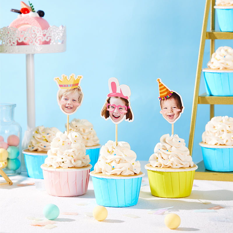 The Custom Cupcake Topper with Baby Face Avatar comes in a set of six and is the perfect way to add a personal touch to your baby shower or child's birthday celebration. Each topper features a cute and adorable cartoon avatar of your baby's face, adding a fun and playful element to your dessert table. These cupcake toppers are made from high-quality cardstock paper and are mounted on food-grade wooden sticks, ensuring that they are safe for use with your baked treats. With these custom cupcake toppers, your celebration will be even more memorable and unique.