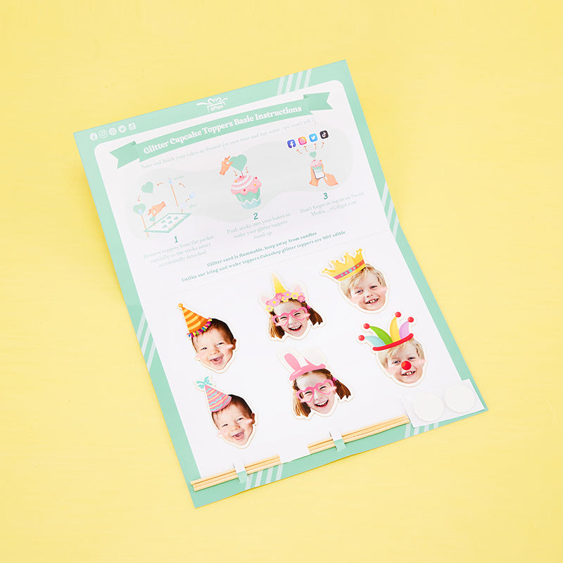 If you want to stand up your toppers on sticks - Our Toppers come professionally packaged with 6 x wooden sticks, and glue dots & simple to follow instructions.