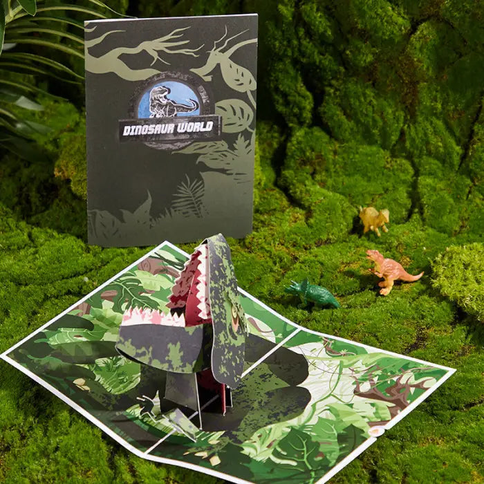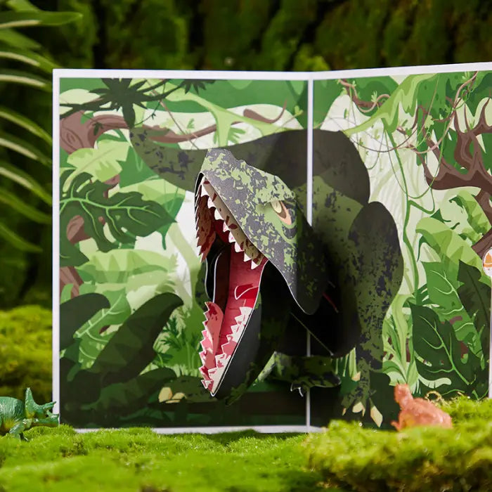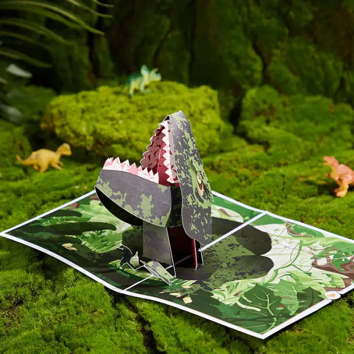 A Giganotosaurus Dinosaur Pop-up Card is a type of 3D greeting card that features a detailed illustration of the Giganotosaurus dinosaur. When the card is opened, the Giganotosaurus pops out from the center, creating a visually striking and interactive experience. The card may also include additional illustrations, facts, and information about the Giganotosaurus, its habitat, and other relevant details. These pop-up cards are typically used for special occasions such as birthdays, holidays, and other celebrations, and they can serve as a unique and memorable gift or keepsake.