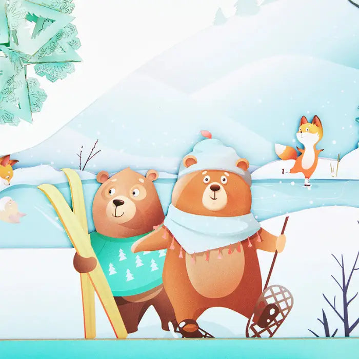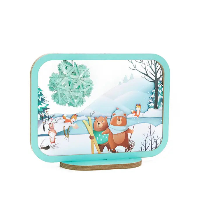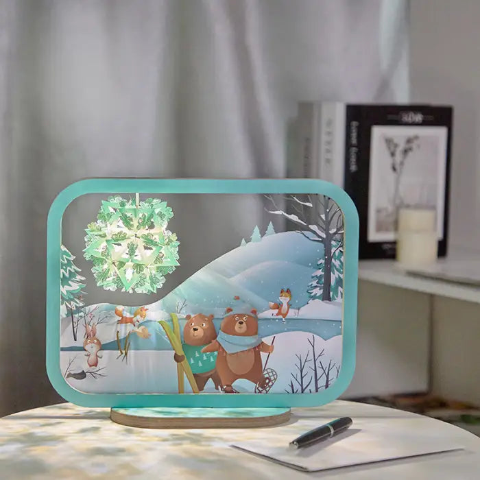 This one is Winter Skating 3D Paper Carving Night Lights. Bears, foxes, rabbits and other small animals are skating by the lake. The snow-capped mountains are full of liveliness, and everyone is happy to play. It is the best gift for a friend or loved one in winter.
