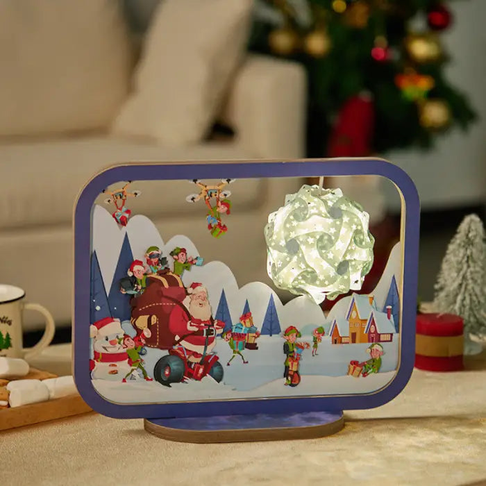 Santa Claus giving gifts 3D Paper Carving Night Lights